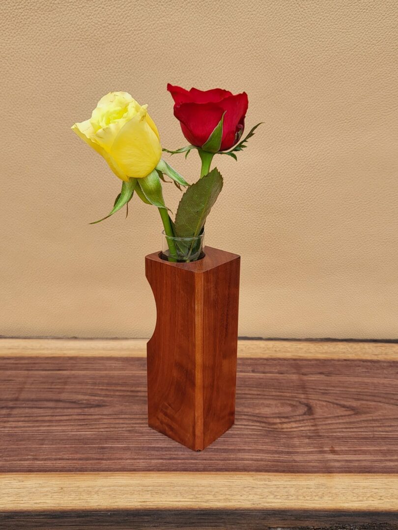 Le movingui se distingue par sa teinte dorée, presque solaire, qui apporte immédiatement de la chaleur à l’objet. Ce soliflore joue sur cette luminosité naturelle, renforcée par des nuances subtiles qui évoquent un bois vivant, traversé de lumière.