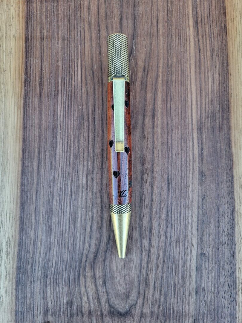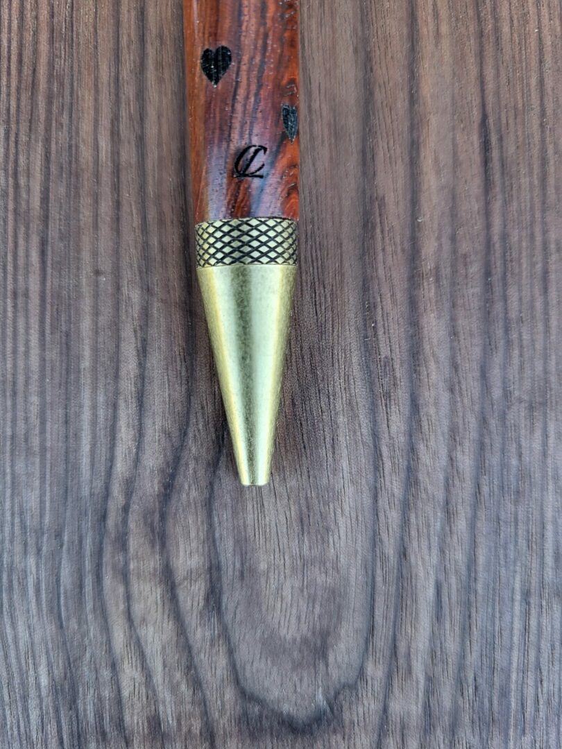 Le mécanisme en bronze patiné s’accorde naturellement avec la chaleur du bois, renforçant l’harmonie générale de la pièce. Les parties moletées apportent une texture subtile et une prise en main sûre. Avec ses 35 grammes, le stylo offre un équilibre fluide, agréable au quotidien. L’écriture se fait sans effort, portée par un contact doux et une sensation de matière pleinement assumée.